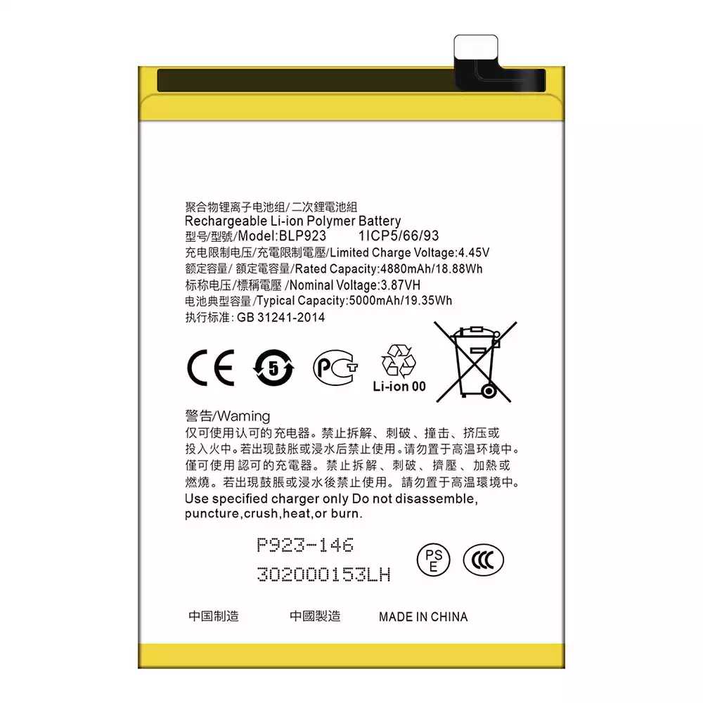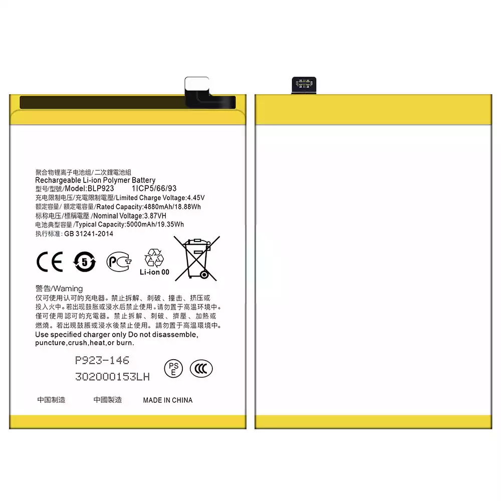 بطارية الهاتف الذكي BLP923 ينطبق على OPPO A57 2020 /A57 4G 2022 /A57 2022 /A77 4G /A77 5G /A77s /A78 5G /A97 5G / K10 5G / OnePlus Nord N20 SE /OnePlus Nord N300 5G /Realme C51