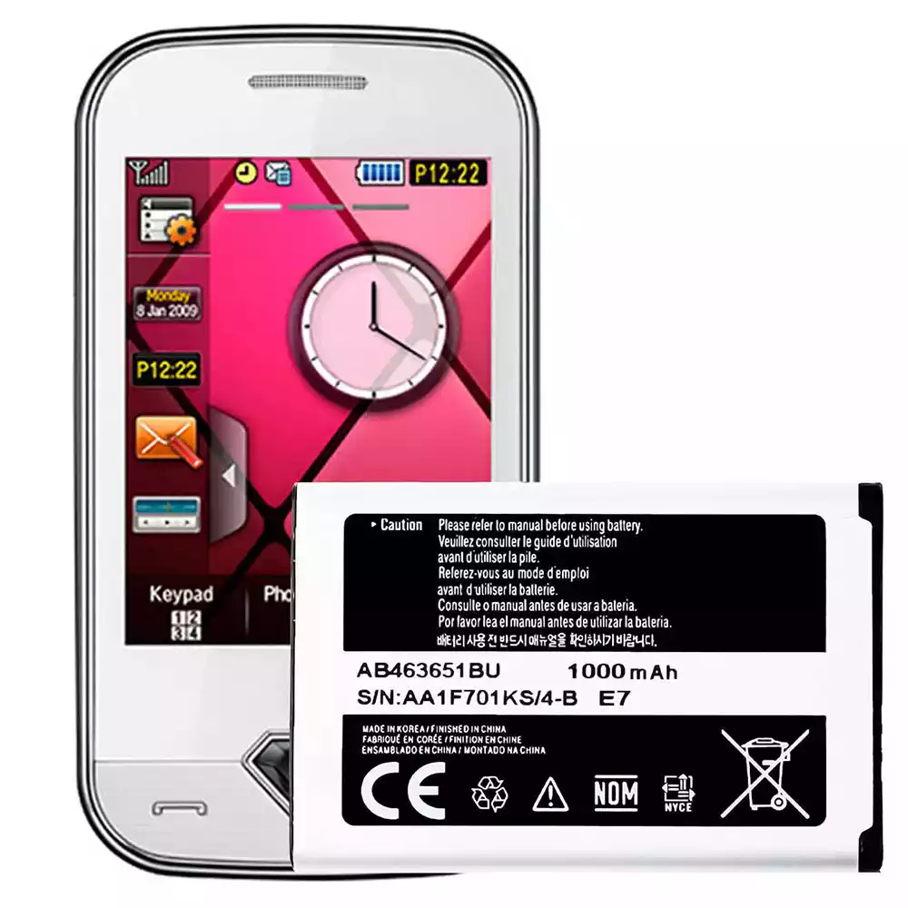 بطارية الهاتف الذكي AB463651BU ينطبق على Samsung S3650 Corby/Ch@t 322/S3650 Genio Touch/C3222 Ch@t 322 DUOS/S7070 Marina/S7070 Diva La Fleur S7070/s3370 Corby 3G/Acton/Pocket3G Star Nano 3G