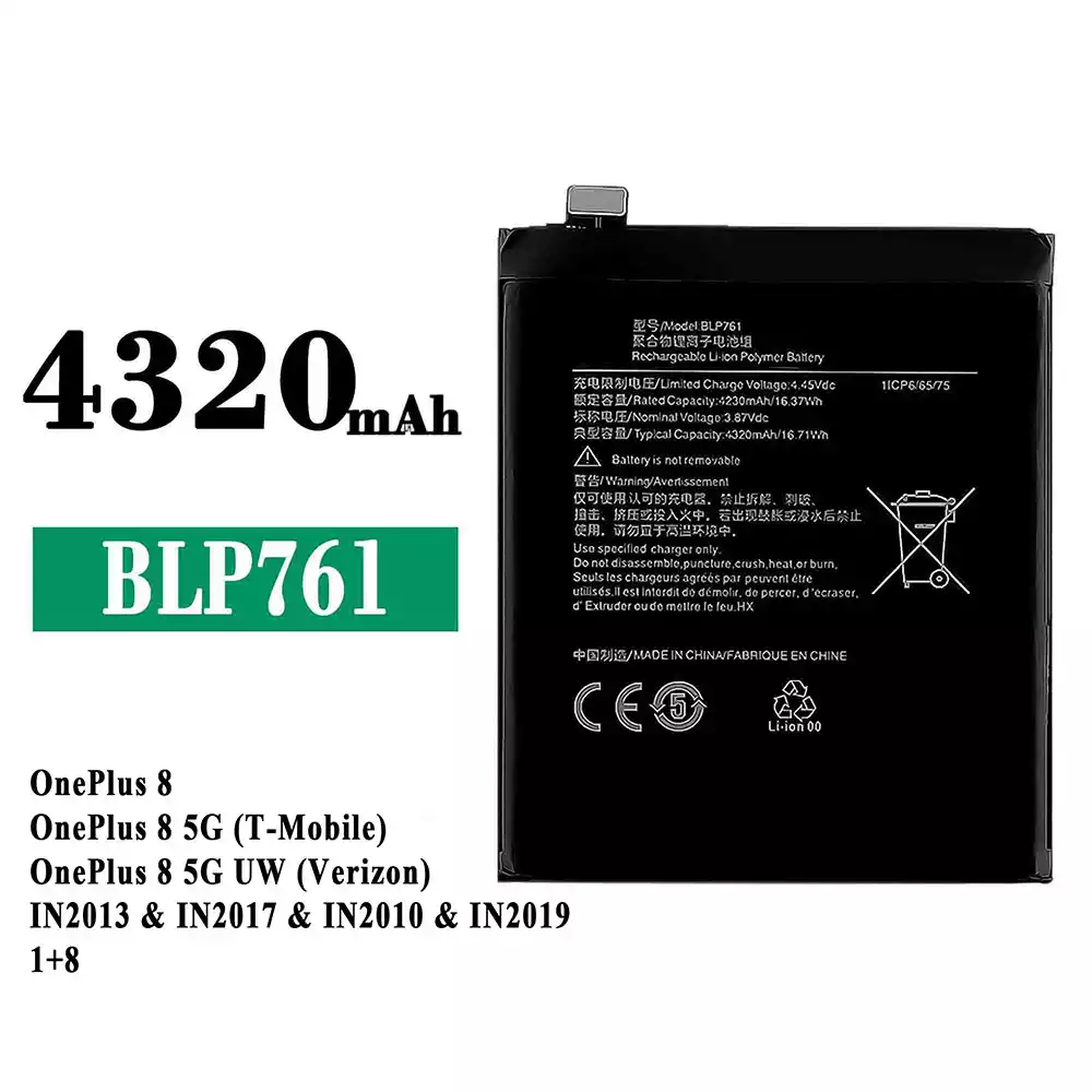 بطارية الهاتف الذكي BLP761 ينطبق على OPPO OnePlus 8 / OnePlus 8 5G (T-Mobile) / OnePlus 8 5G UW (Verizon) / IN2013 / IN2017 / IN2010 / IN2019 1+8