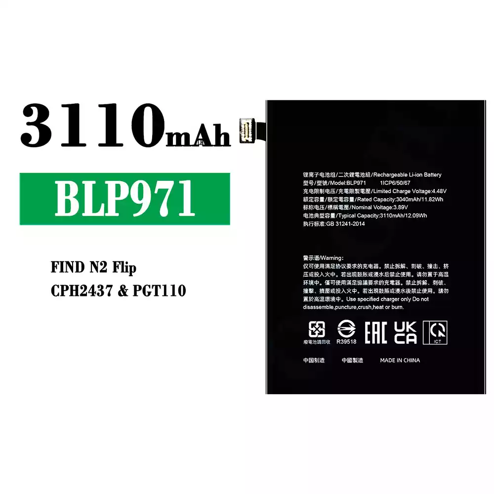 بطارية الهاتف الذكي BLP971 ينطبق على OPPO FIND N2 Flip/CPH2437/PGT110