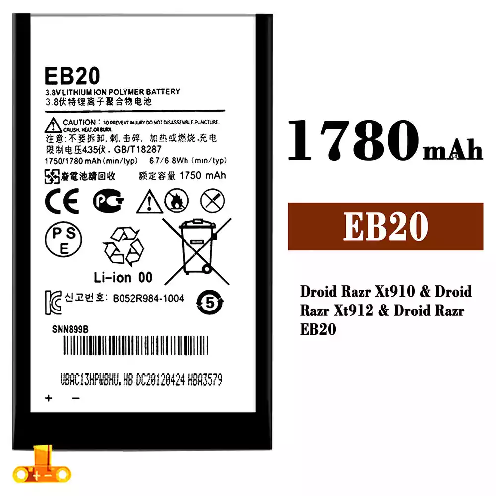 بطارية الهاتف الذكي EB20 ينطبق على Motorola Droid Razr Xt910 / Droid Razr Xt912 / Droid Razr EB20