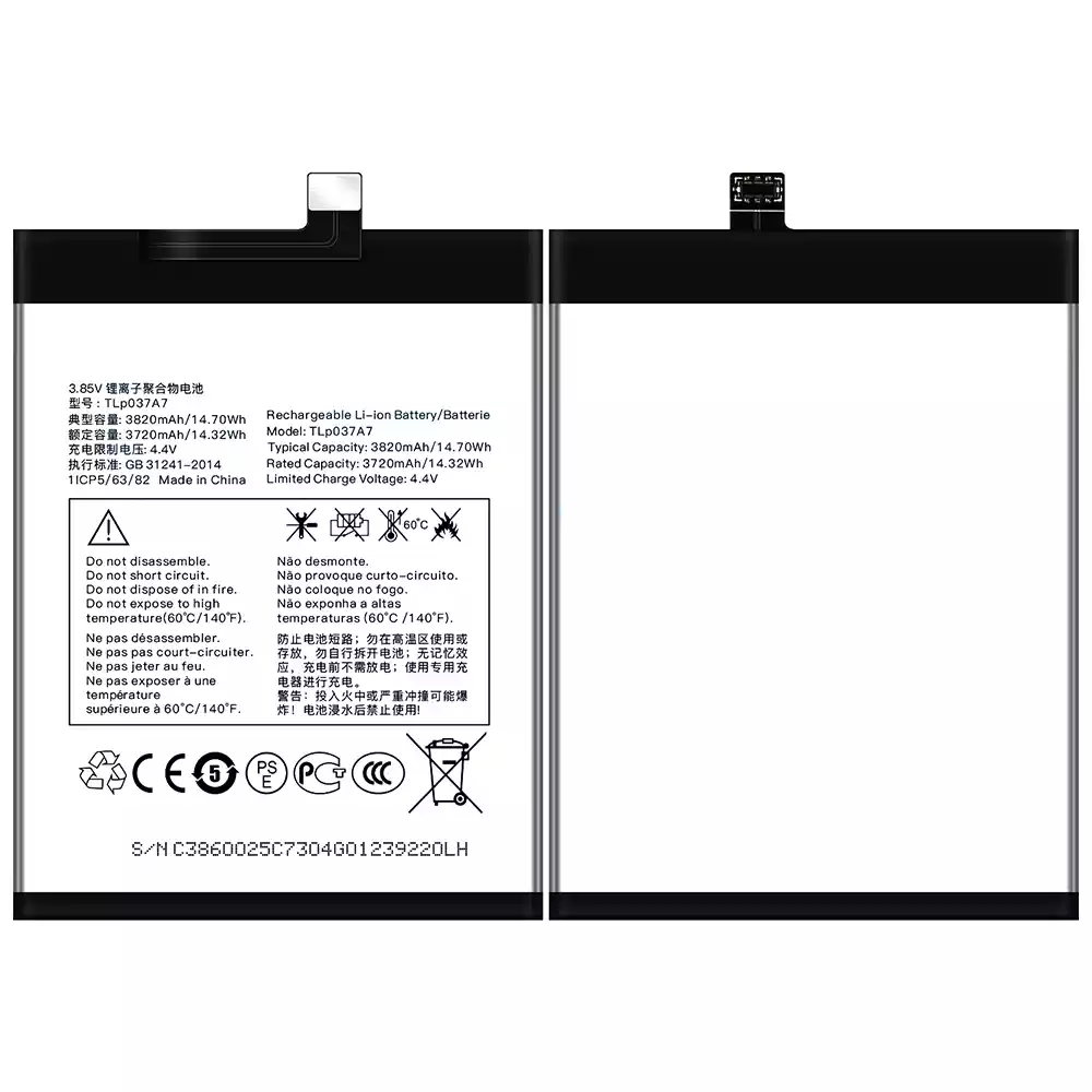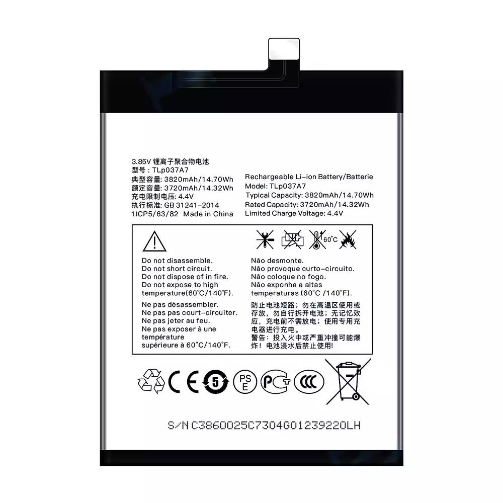 بطارية الهاتف الذكي TLP037A7 ينطبق على Alcatel TCL Plex/T780H