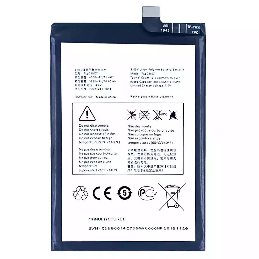 بطارية الهاتف الذكي TLP038C7 ينطبق على Alcatel 3X 2019/5048Y/5048A/5048Y_EEA/5048I/5048U_EEA/5V/5060D/5060A/5060J