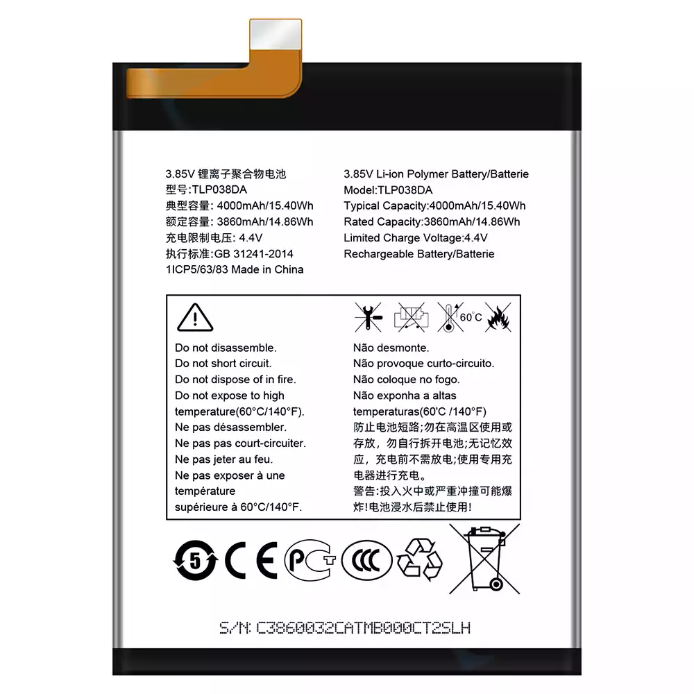 بطارية الهاتف الذكي TLP038DA ينطبق على Alcatel TCL 20E